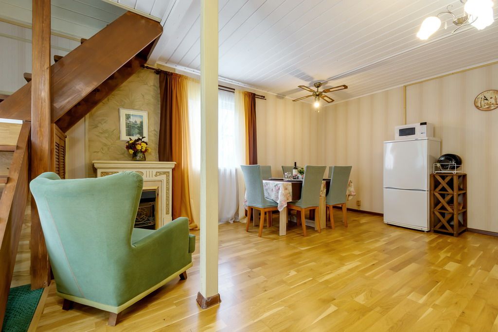 В гостиной на диване перед ТВ или в уютном кресле у камина сможет расслабиться и отдохнуть с любимой книгой, бокалом вина или просмотром фильмов.